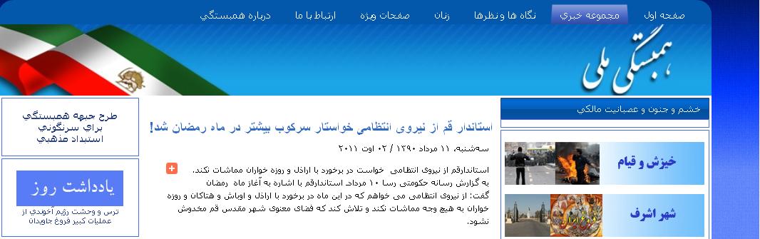 همبستگی ملی در متن این خبر آورده است: «استاندارقم از نیروی انتظامی خواست در برخورد با اراذل و روزه خواران مماشات نکند. به گزارش رسانه حکومتی رسا ۱۰ مرداد، استاندارقم با اشاره به آغاز ماه رمضان گفت: «از نیروی انتظامی میخواهم که در این ماه در برخورد با اراذل و اوباش و هتاکان و روزه خواران به هیچگونه مماشات نکند و کوشش کند که فضای معنوی شهر مقدس قم مخدوش نشود.»
